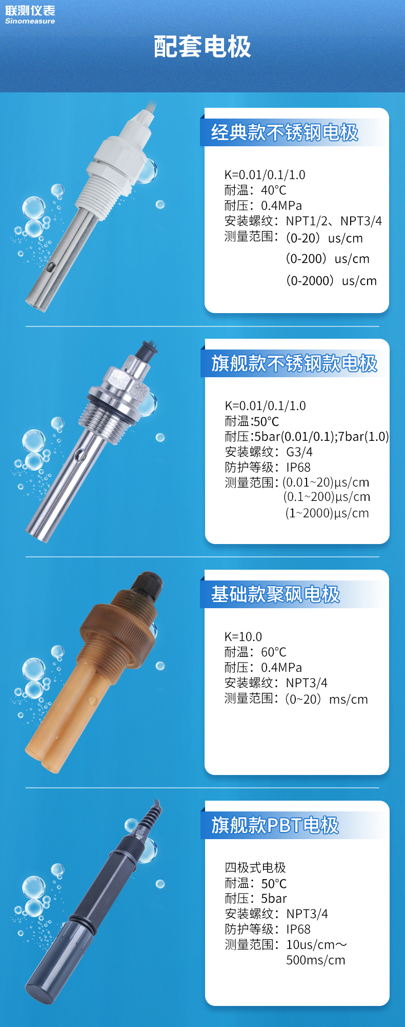 簡要描述:電導(dǎo)率不銹鋼電極專門用于純水、水處理等的電導(dǎo)值測量,特別適合火力發(fā)電廠和水處理行業(yè)的電導(dǎo)率測量。