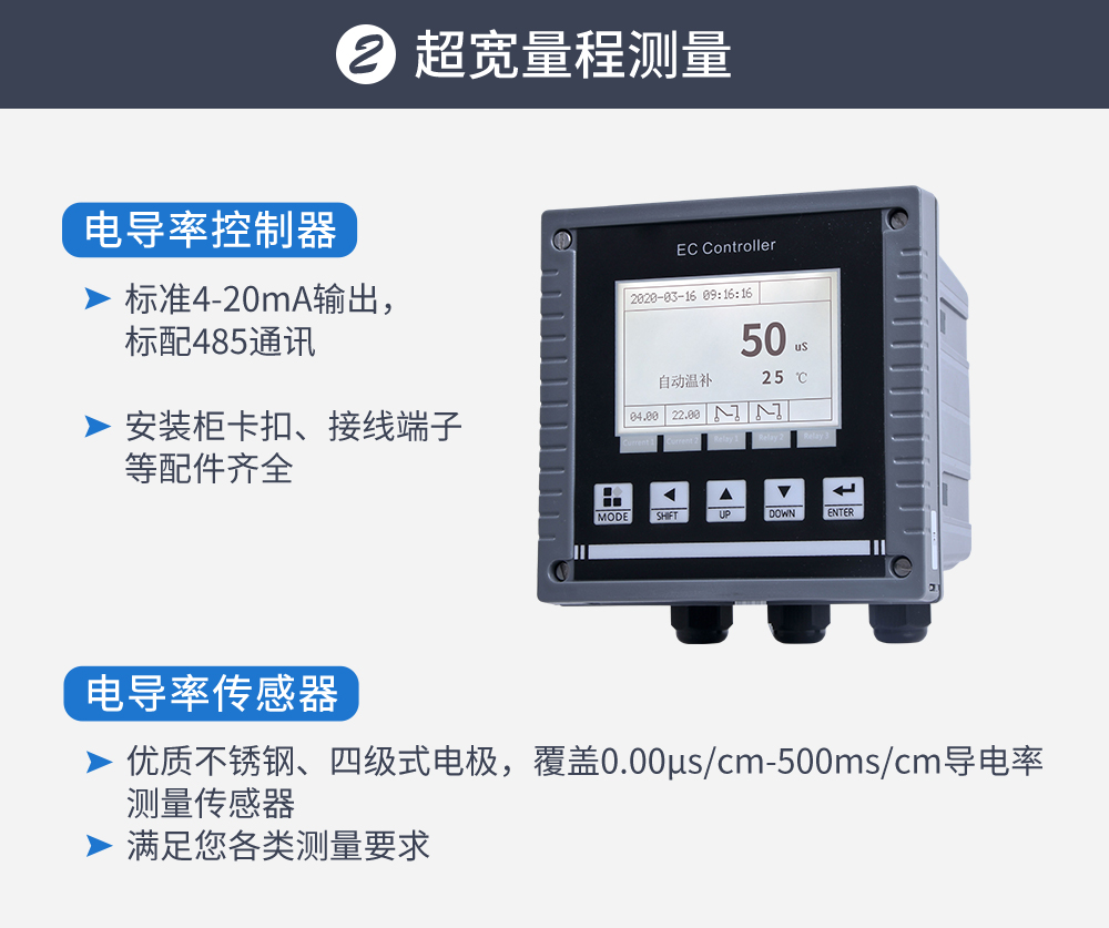 簡要描述:儀器用于工業上電導/比電阻/鹽度/溶解固體總量及溫度的測量,如: 廢水,純凈水,高純水,環境監測,食品生產過程等,儀器可以盤面安 裝,壁掛安裝,管路安裝。儀器提供 2 路電流輸出,最大負載為 500Ω, 儀器提供 3 路控制用繼電器,繼電器最大承受電壓及電流為 5A/250VAC 或 5A/30VDC。